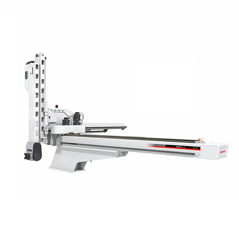 五轴AC伺服驱动,标配AC伺服驱动轴,A轴旋转角360。,C轴旋 转角180。,可自由定位调整夹具角度,寿命长,精度高,故障率低, 维护简单,主要用于快速取出或是复杂角度取出应用,特别是长形状 产品如汽车产品,洗衣机家电产品。 华成五驱控一体控制系统:信号线少,远距离通讯,扩展性能好,抗 干扰能力强,重复定位精度高,可以同时控制多轴,设备鉗户简单,故 鮮少。